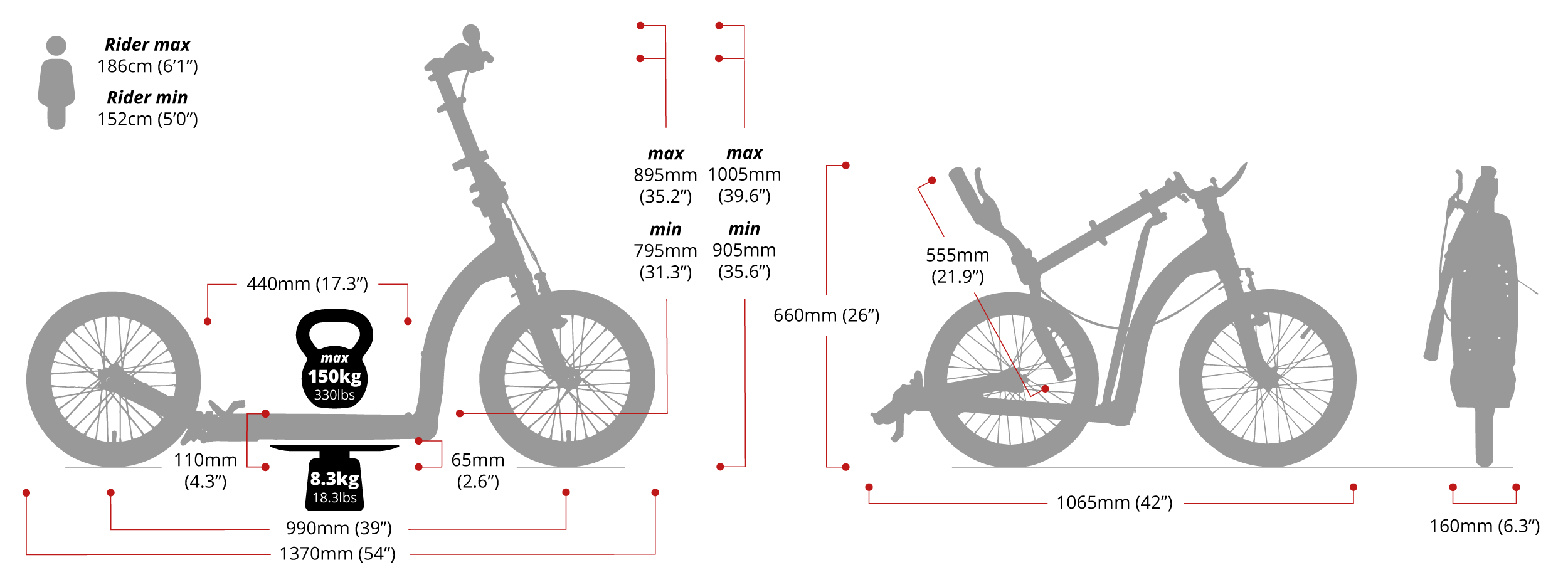 • Lightweight (8.3kg), adjustable and foldable